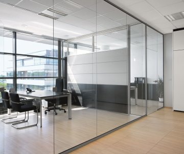 Çift cam tercih edildiğinde, camlar arasındaki boşluklar sayesinde çok yüksek ses yalıtım sağlayabilmek mümkün olur. Verimli bir çalışma ortamı yaratmak için ofis bölme sistemleri en cazip çözümlerdir.